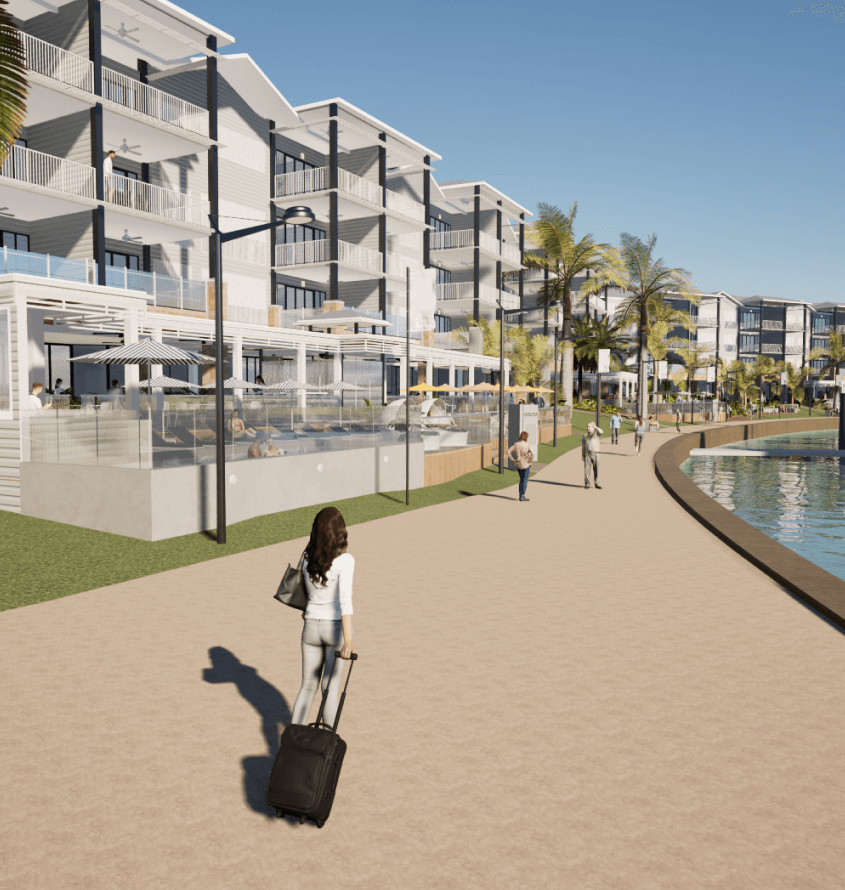 Stage 1 strengthens the precinct’s offering by introducing a high-quality hospitality element that enhances everyday life for owners, visitors and travellers, without altering the precinct’s core identity.